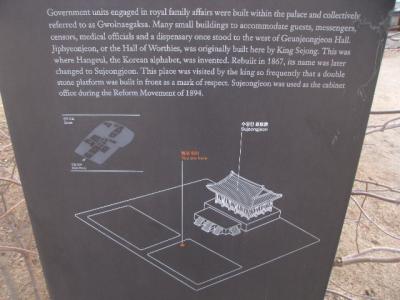 ソウルにある五大王宮の中でも一番有名なのがこちらだと思いますが、正直ここはありきたりな観光コース以外にも様々な見所があって、一度で広く浅く見てしまうのは勿体なく感じます。また、数年前に乾清宮エリアが整備されたように、現在でも発掘や復元工事が続いている箇所もあって、一度行かれたという方でもまた足を運ばれると新たな発見があるかと思います。更に、北東側にある国立民俗博物館や、南西側にある国立古宮博物館などを含めると、とても一回では観覧し尽せない王宮だと思いますので、何度かに分けて密度を濃く観覧されることをお勧めしたいです。