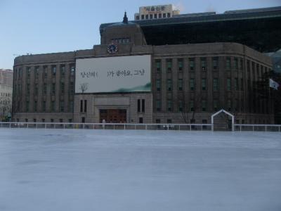 ソウルの旧市庁に関しては、日本統治時代から続く貴重な建造物の一つとして、これまでに何度も眺めてきた建物ですが、ここは周囲の景観を含めて、季節毎に全く違う風景を見せてくれます。今回はスケートリンク越しに眺めましたが、厳冬期ソウルの凛とした冷え込みの中で、テカテカに輝いたスケートリンクと昔ながらの旧市庁とのコラボ風景が何とも美しく感じられました。