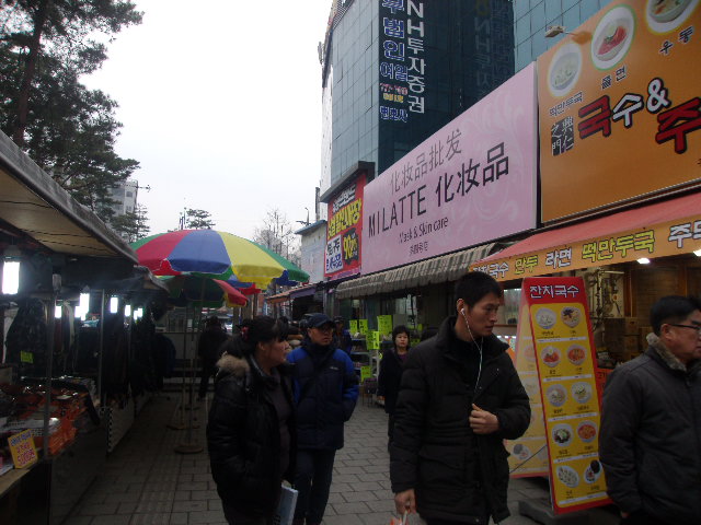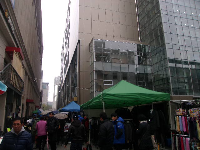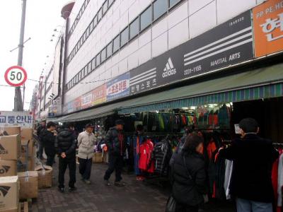 こちらの市場に関しては、”平和市場”と名が付く東大門エリアに続く数ある市場の中で、一番南東側に位置しています。私が訪問した2015年1月時点で、建物のメインエリアが工事中で、営業していないのかなと最初は思いましたが、建物の脇の通路上で露天商のような感じで営業している雰囲気でした。ここに立ち寄った際、折しも雨が降り始めて、お店の方が急いで商品にビニルシートを掛けはじめたりしていて、こういう状況で屋外営業するのも大変だなと、早く工事が完了して屋内でゆっくりと営業できるようになると良いなと思いながら立ち去りました。