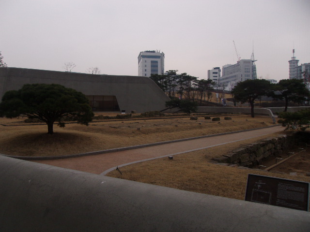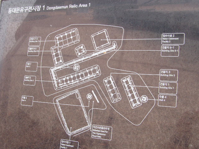 デザインプラザのオープンで、すっかりと変わった印象になった東大門の旧運動場エリアですが、この公園に関しては、歴史に忠実に遺構が再現されている感じで、個人的には好感が持てました。私は訪問時にみぞれ交じりの冷たい雨が降り始めてしまったため、観覧が雑になってしまいましたが、詳細な解説板も付された、なかなか勉強になる公園だと思います。また、ここは屋外施設ですが、悪天候に見舞われてもすぐに巨大なデザインプラザの建物の中に逃げ込めるのも立地的なアドバンテージだと思います。