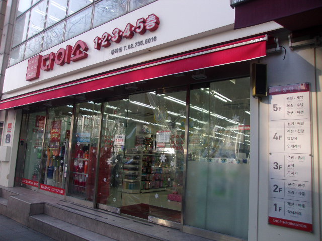 日本でお馴染みの100均チェーン店として知られるダイソーは、現在では韓国内でも結構店舗を見かけますが、その中でも鍾路にあるこちらのダイソーは売り場も5Fまであって、店舗的にも結構大きく感じられるお店です。相場の関係で、実は商品のお買い得度合としては、現状では日本のショップの方が安く感じられますが、韓国の”100均”事情を肌で感じるためにも、訪れておいて損はないお店かと思います。
