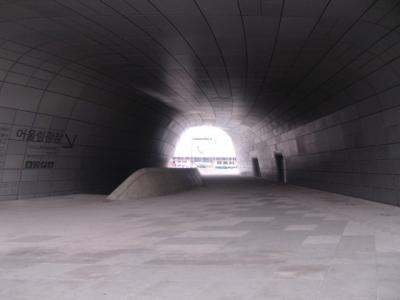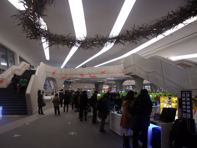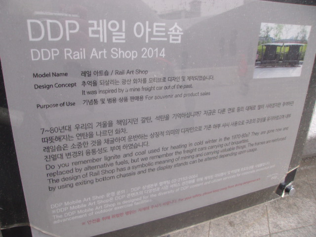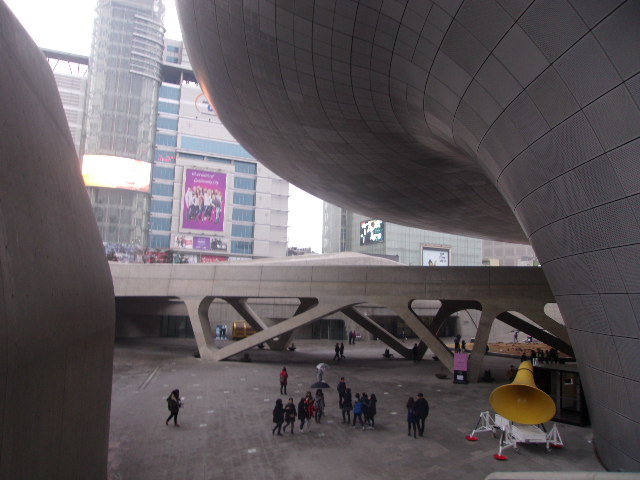 東大門の旧運動場エリアは、結構長期にわたって工事している印象がありましたが、2014年になって遂にこちらがオープンしました。世界的な建築家のザハ・ハディト氏が設計した、とても近未来的なユニークな外観の建物で、見所は色々とあるかと思います。ここに関しては、訪れる人次第で、印象は随分と違ったものになるかもしれません。私のような近代アートに審美眼のない者からすると、何だか退屈なイベントホールや売店が混沌と並ぶだけという感じで、大騒ぎするほどの所でもないかな、というのが、現状のデザインプラザを見ての感想です。オープンしたばかりですので、今後どのように変貌を遂げていくのかは楽しみな所ですが…。