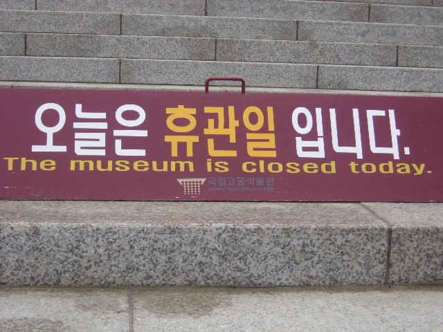 景福宮の南西側、地下鉄景福宮の5番出口に直結した便利な位置にあるのがこちらです。ただ、私は月曜日に訪問したのですが、生憎の休館日で内部見学が出来ませんでした。地下鉄5番出口から改札口に至る通路上には、この博物館の展示品が色々と紹介されている箇所がありますので、休館日にはこれらを見て雰囲気を楽しむと良いかと思います。尚、景福宮自体の休業は火曜日ですので、王宮と博物館とを両方同時に見学されたい方は水~日曜日に訪問するようにして下さい。