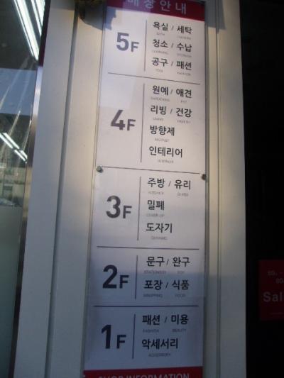 こちらのショッピングセンターは、地下鉄6号線の梨泰院駅1番出口を出てすぐの所にあって、立地的にはとても便利です。売場に関しては4Fまでありますが、日本語表記なども結構あって、ハングルが苦手な方でも目的の売り場が見つけ易くてよいレイアウトだなと思います。ただ、売り場自体が閑散としていて、常にお店の人の視線を感じる雰囲気で、ちょっと買い辛さはあるように感じました。