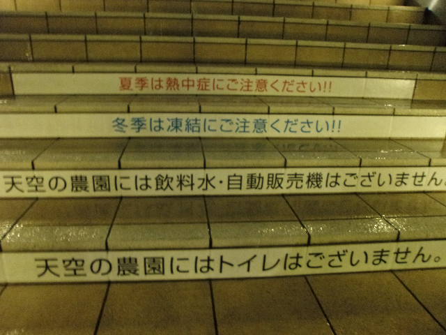 JR大阪駅に直結しているノースゲートビルにおいて、一般人がアクセスできる最上階的な場所がこちらです。11Fにある風の広場まではエスカレーターでアクセスできますが、そこからこの農園までは3フロア分を階段で登らなくてはなりません。夏は相当暑くなるようで、階段部分には水分補給に関する注意書きなども記されていました。上には飲料自販機等がありませんので、注意書きの通り、夏の日中などは熱中症対策も必要かと思います。お勧めは何といっても夜間で、階段で登らなくてはならない分、訪れる人が少ないので、大阪の夜景を静かに楽しむことが出来ます。