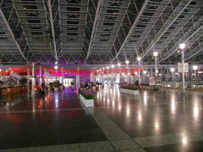 今回、関西空港の展望ホール、スカイビューの閉館間際(22時に閉館します)の様子を観に行きました。夜間のライトアップは素晴らしく、しかも殆ど人が居ないので、とても幻想的な景観を楽しむことが出来ました。人目を憚りたいカップルの方なども閉館間際のスカイビューはとてもお勧めだと思います。尚、旅客ターミナルからスカイビューまでのバス時刻は21:20か21:40(実はそれ以降にも2本あるのですが、それに乗ってしまうと開館時間に間に合いません)に乗車し、帰りは21:50か22:10のバスで旅客ターミナルに戻るというのが閉館間際の最後の観覧パターンだと思います。
