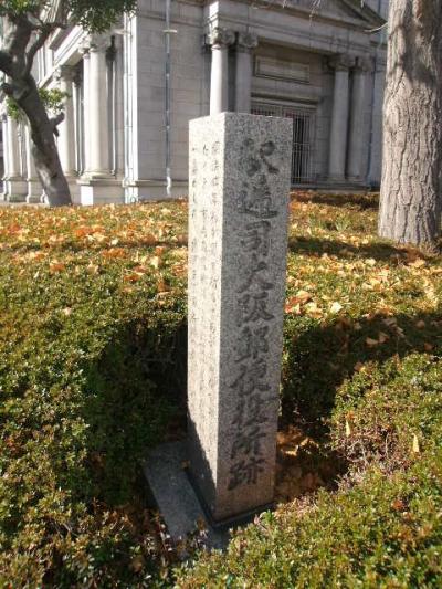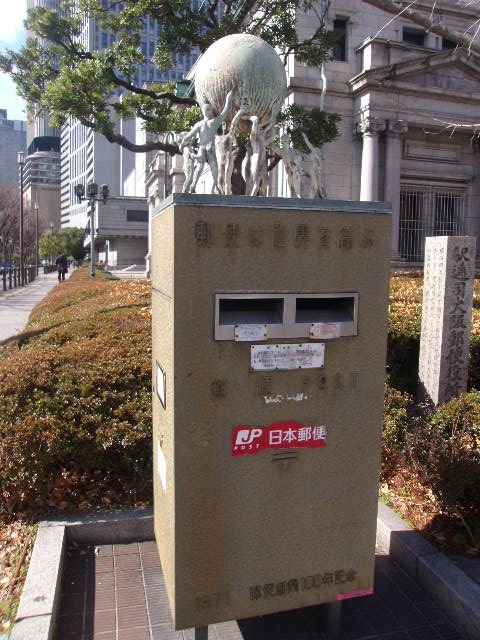 日銀大阪支店の目の前にひっそりと石碑が建っていて、なんだろうなと思ったらこちらの役所跡でした。郵便という特性をコラボさせているのか、すぐ目の前にある茶色いポストが年代物の感じで、景観に合わせているのかなと思わせてくれる雰囲気が素敵でした。