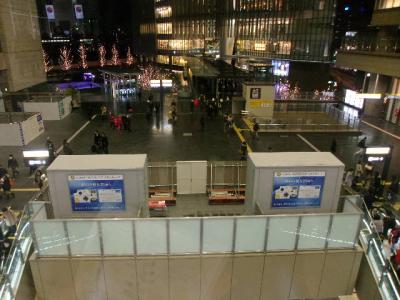 今回久し振りに梅田の大阪駅界隈を歩いてみましたが、まずこのエリアの工事がすっかり完了して、多層構造のビルが南北に二本出来ていたのに驚かされたのですが、その北側のビルの2F、グランフロント大阪方面に続く通路と接続する辺りにあるのがこちらの広場でした。ベンチなどが設置されていて、平時であれば、待ち合わせ場所として便利なロケーションの広場のように感じましたが、私の訪問した2015年2月の段階では、幾つかの場所がパーティションで仕切られていて、すっきりとした待ち合わせ場所として機能するまでは、もう少し時間がかかるかなという風情でした。