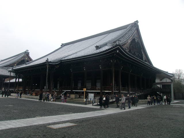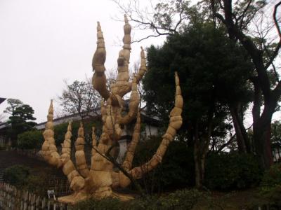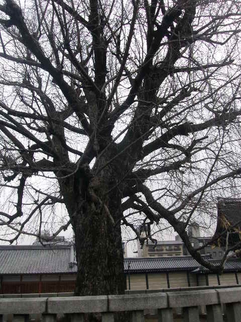 清水寺に続く五条坂近くにある大谷本廟は、西本願寺系の本廟として親しまれていて、親鸞聖人関連の見所なども色々ありますが、冬のマニアックな見所として、総門の傍のソテツの冬囲いが挙げられるかと思います。京都は冬季でもそれ程積雪が多いというイメージはないのですが、やはり南方系の樹木であるソテツにとっては、冬の京都の冷え込みには弱い部分があるようで、ほぼ全体を丁寧に包んである丁寧な冬囲いに驚かされました。尚、本廟から西本願寺までは循環バスが運行されていますので、お寺の参詣にはこちらのバス利用が便利です。