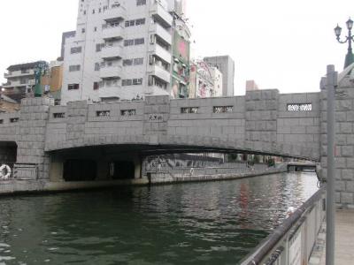 賑わいを見せる道頓堀の中心エリアからはかなり西に進んだ場所にあり、ここまで来ると海が近いせいか海鳥が見られたりするのもちょっと変わった風情でした。橋自体は石造りの新しい雰囲気の感じでしたが、道頓堀観光の西端はここに設定して巡られると良いかと思います。