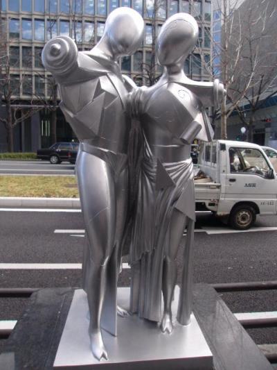 御堂筋を歩いて移動する際に楽しみにしていることの一つとして、こちらの作品群を見ながら歩けることが挙げられます。道の両側に色々な作品が並んでいて、思わず足を止めてしまうのですが、欠点としては路駐が多いことで、作品を撮りたくても、車の中に人がいたりすると、「何撮ってんねん」という雰囲気で睨まれることがあり、本来は路駐の方が良くないことの筈なのですが、何だか複雑な気持ちになってしまいます。