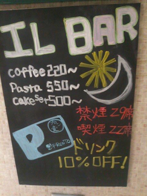 私の中では、プロントとプロントイルバールとの違いは、後者はその名前から、バーの方を優先した営業なのかな、と思っているのですが、別にイルバールでも朝からカフェ営業していて、こちらの店舗もその例外ではありませんでした。勿論、利便性を考えるとその方が有り難いのですが、ますます両者の違いが解らなくなってしまいました。因みに別項でもご紹介しましたが、APIA側の店舗は普通のプロントで、こちらも早朝から営業しています。