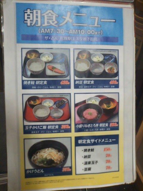 こちらのお店は、名前からしてズバリ丼物の専門店だといえるのですが、実は朝食時間帯のみは別メニューで営業していて、大手牛丼チェーン店でよく見られるような朝食メニューと同じような感じでラインナップされています。朝食メニューの中にも一部丼物メニューもありますが、このお店の違った雰囲気を感じて頂くためにも、2回目以降のご訪問の方には特に、朝定食やうどん等の朝食メニューにチャレンジされてみることをお勧め致します。
