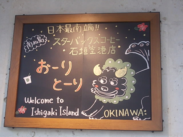私のような日本の端のお店探しマニア(?)な方にとっては、2014年4月現在の日本最南(西)端スタバは、新石垣空港内にありますので、アクセス的にはとても制覇しやすい立地だと思います。新空港の1Fはフードコートのようになっていて、共用の座席も多めに用意されていますので、搭乗後、搭乗前の一時を過ごすのに良いスタバですが、やはりスタバですのでお値段は高めなので、私のような貧乏人には敷居の高いショップといえそうです。