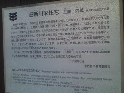関西空港至近の泉佐野市は意外と昔の風情を残した、情緒のある街並みが印象的な町ですが、南海の泉佐野駅から徒歩10分程度の距離にあるこちらの建築は、「旧新川家住宅」が、往時の姿そのままに残されて、資料館的なテイストで一般公開もされています。内部見学される時間がない方も、外からでも十分に町屋建築の風情が味わえますので、是非足を運んでみて下さい。