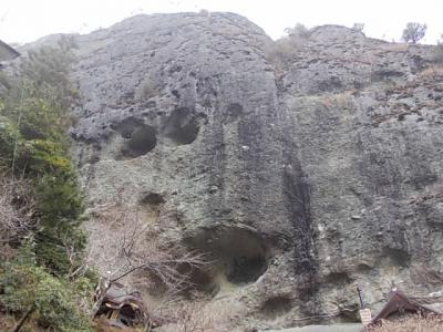 その名の通り、巨石が屹立する奇観の修業道場で、背後の山の全体がご本尊とされていますので、結構広い域内に、見所が点在しています。ここの最大の見所は、逼割禅定(せりわりせんじょう)と呼ばれる、弘法大師の修業場で、危険を伴う鎖場ですが、ここは普段は施錠されているので、業を積みたい方は、納経所にて鍵を借りる必要があります。