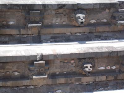 テオティワカン遺跡は縦に長い遺跡なので、なかなか長距離を歩くのが大変だと思いますが、南の方で最大の見所は、この神殿だと思います。ただ、テオティワカンのメイン入口は幾つかあるのですが、先に太陽のピラミッドや月のピラミッドを見てしまうと、規模的にはこちらは小さいので、その価値を過小評価してしまう可能性があるのが残念です。