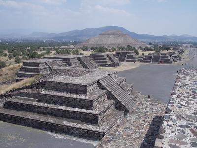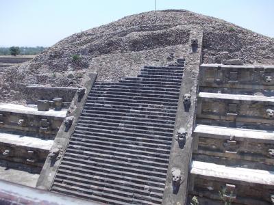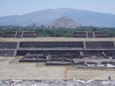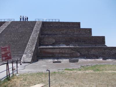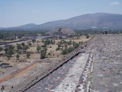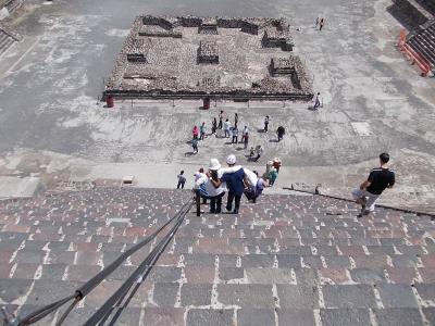 太陽のピラミッドと並んで、この遺跡のメインスポットの一つである月のピラミッドですが、現在は、一番上まで登れません。階段は急なのですが、太陽のピラミッドよりは簡単に登れる(というか、途中までしか登れないので、距離が短いだけですが…)ので、より多くの人で賑わっています。展望は流石に良いので、太陽の方が体力的にきつい、という方は、せめてこちらだけでも登ってみる価値はあります。