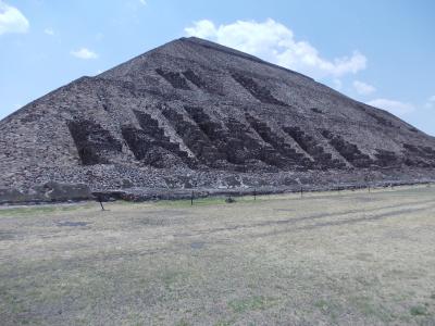 テオティワカン遺跡でも最大の見所、と言っても過言ではない太陽のピラミッドですので、今更、多くを語る必要もないかと思います。そこで私は敢えて裏・太陽のピラミッドをお勧め致します。このピラミッドの南側に博物館がありますが、殆どの人が博物館側に曲がる所を、敢えて逆に曲がって、このピラミッドをぐるっと一周してみて下さい。改めてこのピラミッドの規模に圧倒されます。そして第四コーナーを曲がると、また突然観光地に舞い戻ったかのような人込みが…。時空をタイムスリップしたような衝動に囚われました。