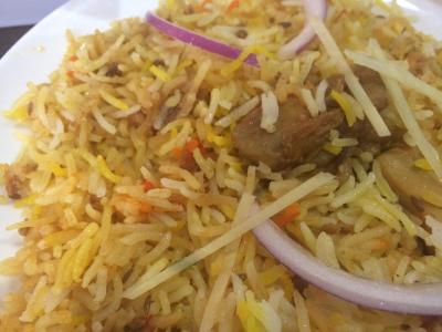チキンビリヤニが絶品です。最近はランチメニューでも食べることができます。一品プラスするならばパコラがおすすめです。ひよこ豆を粉にしたものが天ぷらの衣になったといえばわかりやすいでしょうか。レストランの近くに西日本最大級のモスクがあります。見学したいときは大阪ハラールレストランで相談してみてください。モスク(マスジド)の1階にはショップがあって、豆や紅茶、スパイスを安く入手することができます。ハラールのお肉も扱ってますよ。