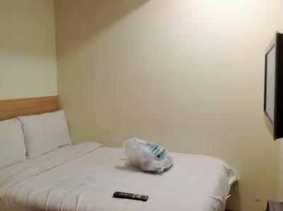 ドア付近からのベッド写真ベッドの横にはテーブルがあるんですが、ベッドか...