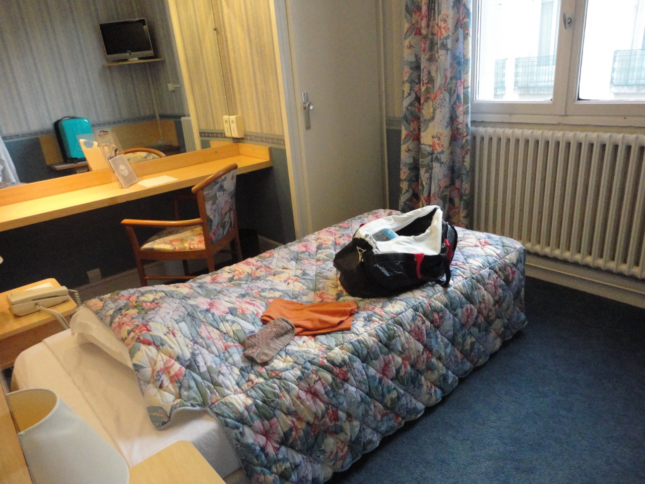 アンヴァリッドやエッフェル塔、地下鉄エコール・ミリテール駅の近くでとても便利です。周りにはレストランもあり、活気があります。ホテル前からはエッフェル塔が見えますが(上部)、ホテルの上階を利用すればお部屋からも見えるみたいです。2泊目は独立記念日でしたので、ホテル前から花火を見ることが出来ました。ただ、パリのホテルだから仕方ありませんが狭い・・・。大型スーツケースを広げると足の踏み場がなくなります。バスルームも窓が立てつけが悪くなっていて、中途半端に開いていて閉めることも開けることも出来ませんでした。