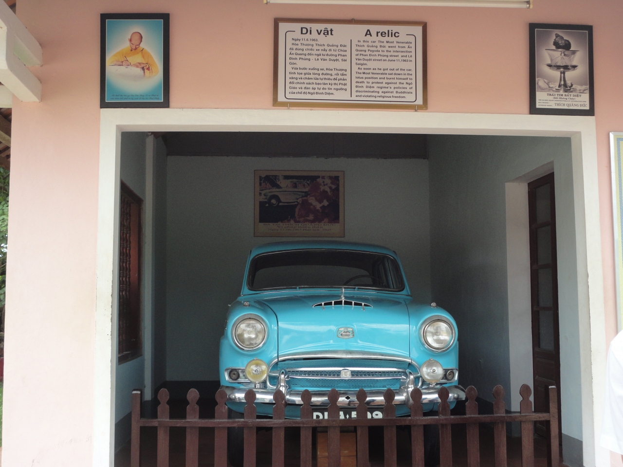 1963年、仏教徒弾圧に抗議したこのお寺の僧侶がアリカ大使館前で焼身自殺した際、乗りつけた車です。