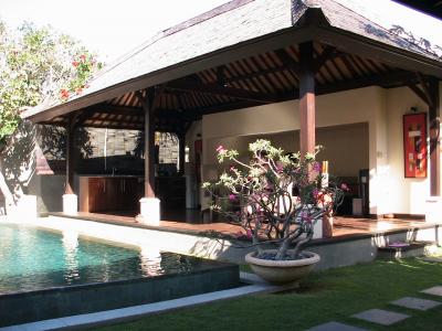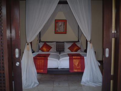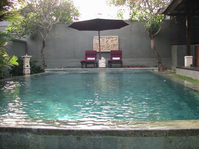 スニミャックにあるヴィラです。家族3人なのに2ベッドルームを使わせて頂きました。かなり贅沢です。プールが真ん中にあり、朝から泳ぎました。朝食も、スタッフが毎朝調理しに来てくれます。午後のお茶の時間も、バリ島らしいスイーツとドリンクを運んできてくれました。ヴィラ内にスパがあり、1回だけ無料でやってもらいました。フロントの方もとても優しく、会うたびに笑顔で挨拶してくれます。自転車も無料で貸し出してくれたので毎日乗り回し、散策や食事に出かけました。最高のホテルです!