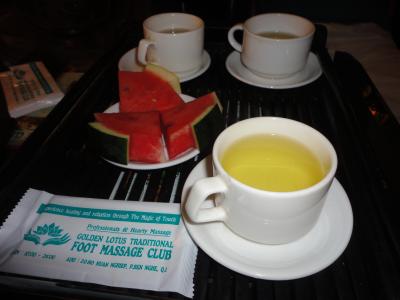 終わって降りて来たらまたまたお茶とフルーツのサービス^^今まで行った中で一番いいマッサージ店でした。また行きたいです。- 旅行時期