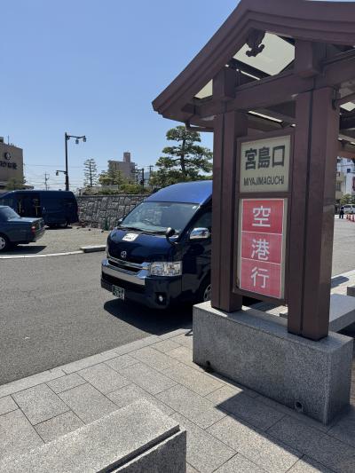 ★12:15広島空港到着後、ラーメンを食した後に宮島行のハイエースワゴ...