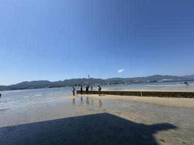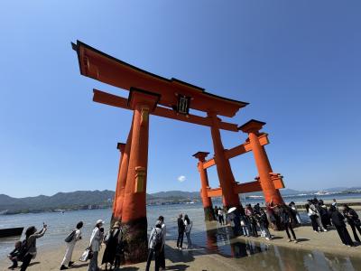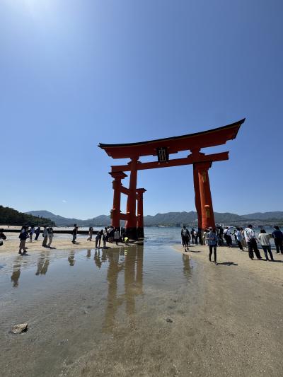 世界遺産にもなった厳島神社の大鳥居。水が引いていたタイミングだったので...