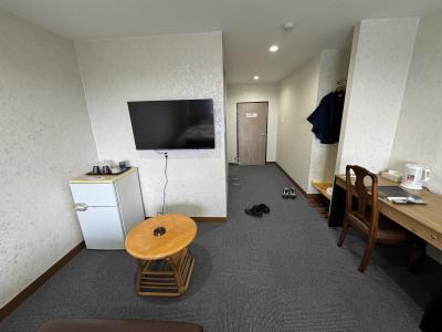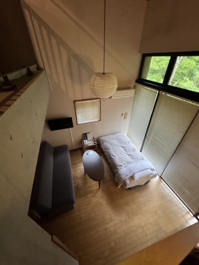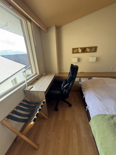 部屋は一人泊なのでワーケーション仕様のシングルルーム。広さは十分なのですが廊下との仕切りドアがなく、またイベントを行うロビーと客室フロアが吹き抜けになっているせいで夜21時くらいまでイベントの騒ぎ声が聞こえかなり気になりました。正直あちこちの宿である「騒音訳ありプラン」の部屋よりも遥かにうるさかったので、ロビーとの仕切り壁の設置など、対策が欲しいです。