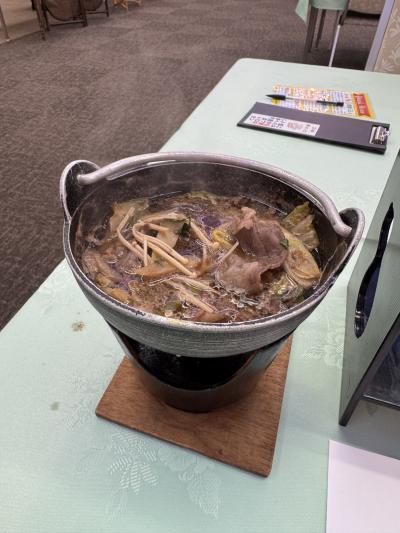 夕食は牛すき焼きメインのライト会席と言った感じで、宿泊料金の安さもあるので量はあまり多くありません。でも程よくお腹が満たされる程度の量はあるので十分。料理の味も良かったので満足です。