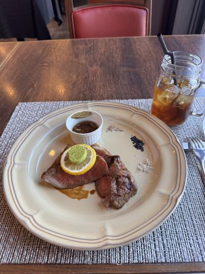 - 夕食のステーキに朝食のオムレツ。とても美味しかったです。