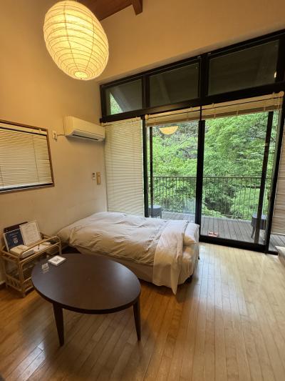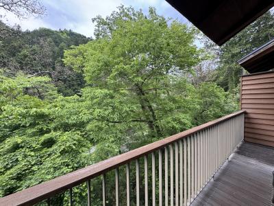 - コテージの部屋からはせせらぎの音と緑の眺め…のんびりするだけでも癒されます。