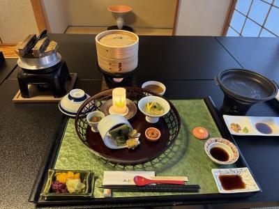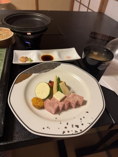 食事は朝夕共に「部屋食」なのは最高です!夕食は予算に応じたアップグレードも可能なので、今回は上州の麦豚しゃぶのプランをチョイス。肉以外の料理もランクアップされてるとのことで満足。