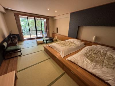今回宿泊したのはアップグレードされた新白梅亭の和室。広くて上品な雰囲気の和室は洗面所も2箇所、檜のお風呂などワンランク上の設備で寛げます。