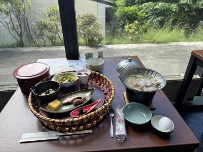 食事は瀬音の館から少し上がった場所の個室会場で頂きました。特に夕食に出てきた甲州ワインビーフの牛肉は絶品。その他の料理も美味しいものが多くて満足でした。