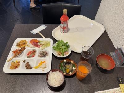夕食では飲み物の持ち込み自由なことに加え、サワーや酎ハイなどがあるフロント脇のドリンクバーの利用も可能で便利。豪華な食事ではないですが必要十分でしょう。