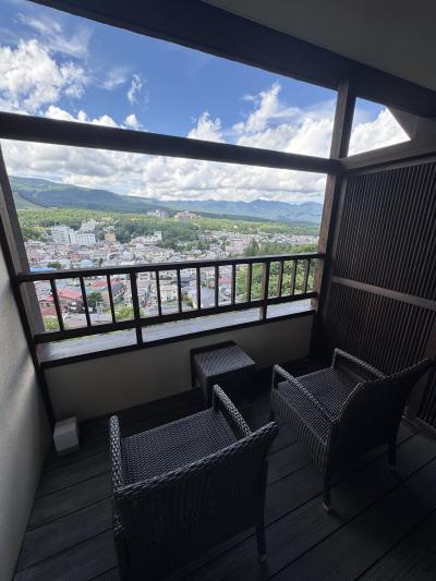 「ヒルズ」の名の通り草津を見下ろす高台にあるリゾートホテル。部屋温泉や貸切風呂、ラウンジでのドリンクサービスなど至れり尽くせり。