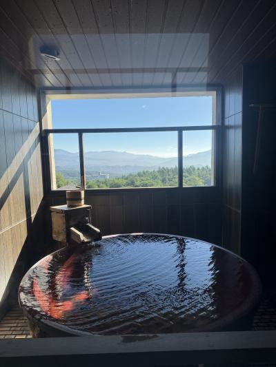その他館内には泉質の違う大浴場、無料で予約不要の貸切露天風呂などがあり、高台にあるホテルの最上階という好立地を活かした眺望の良さはピカイチ。館内にいながら湯浴みを目一杯楽しめます。又、最上階のラウンジではワインやリンゴジュース、アイスなどのサービスもあり至れり尽くせりです。