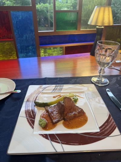 食事は個室風のダイニングで。特に夕食の和牛は柔らかくて、美味しく頂きけました。