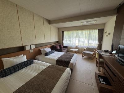 今回宿泊したのは本館のツインルーム。角部屋でそこそこ広さもあり、1人で泊まるとゆっくり寛げました。