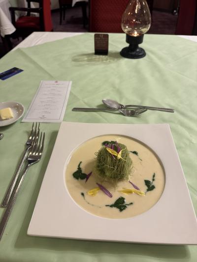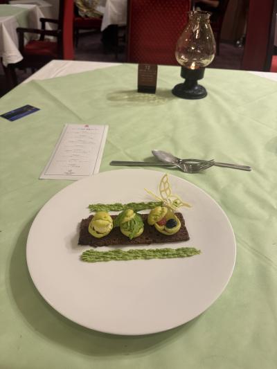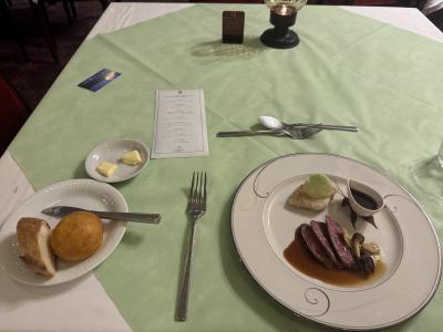 夕食はコース料理でなかなかのクオリティでしたが、川魚のソテーだけははっきりいって微妙。