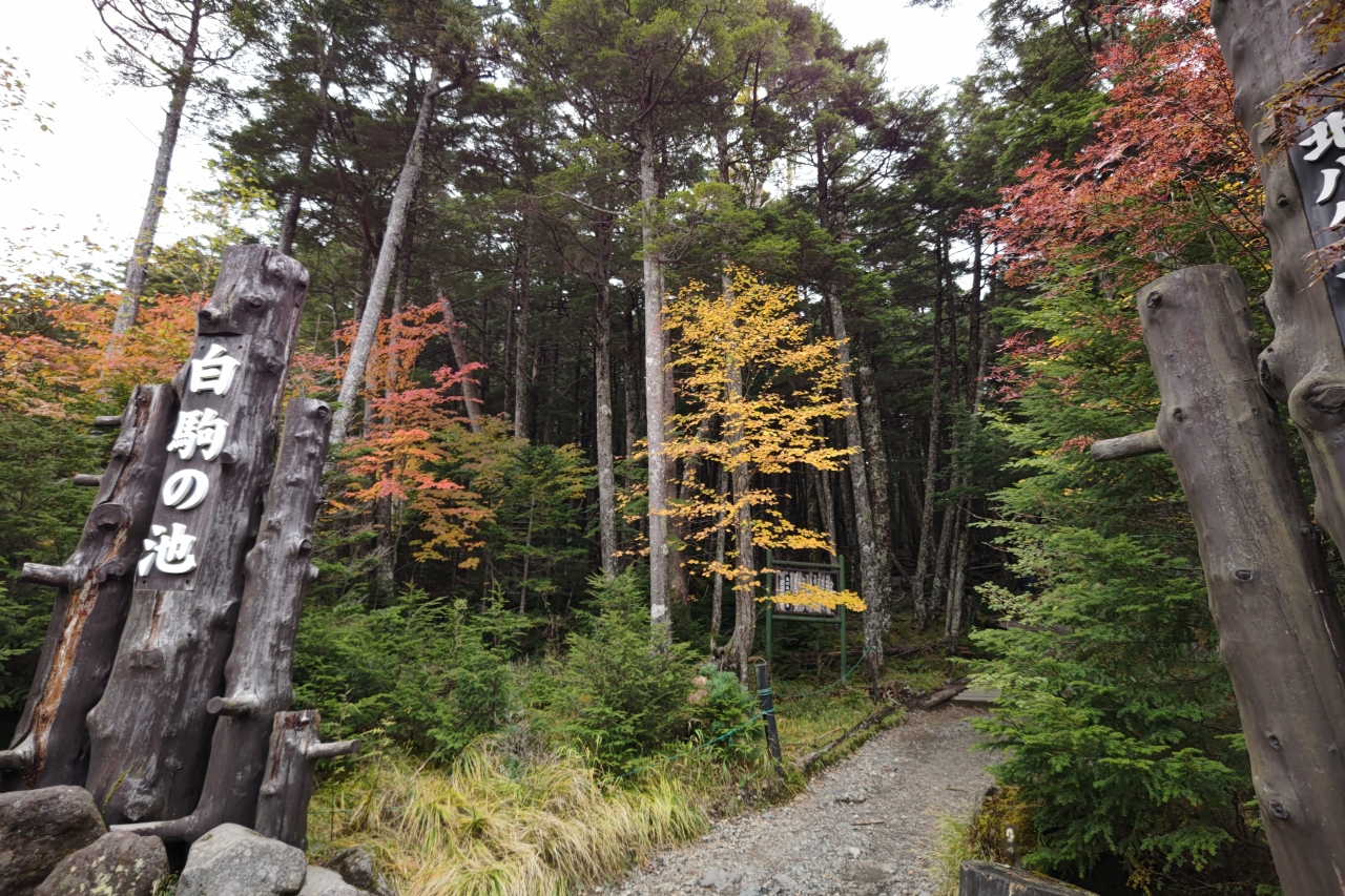 そして何とか入口に降り立ったら、整備された林の中に続く歩きやすい歩道を歩いて、池を目指します。