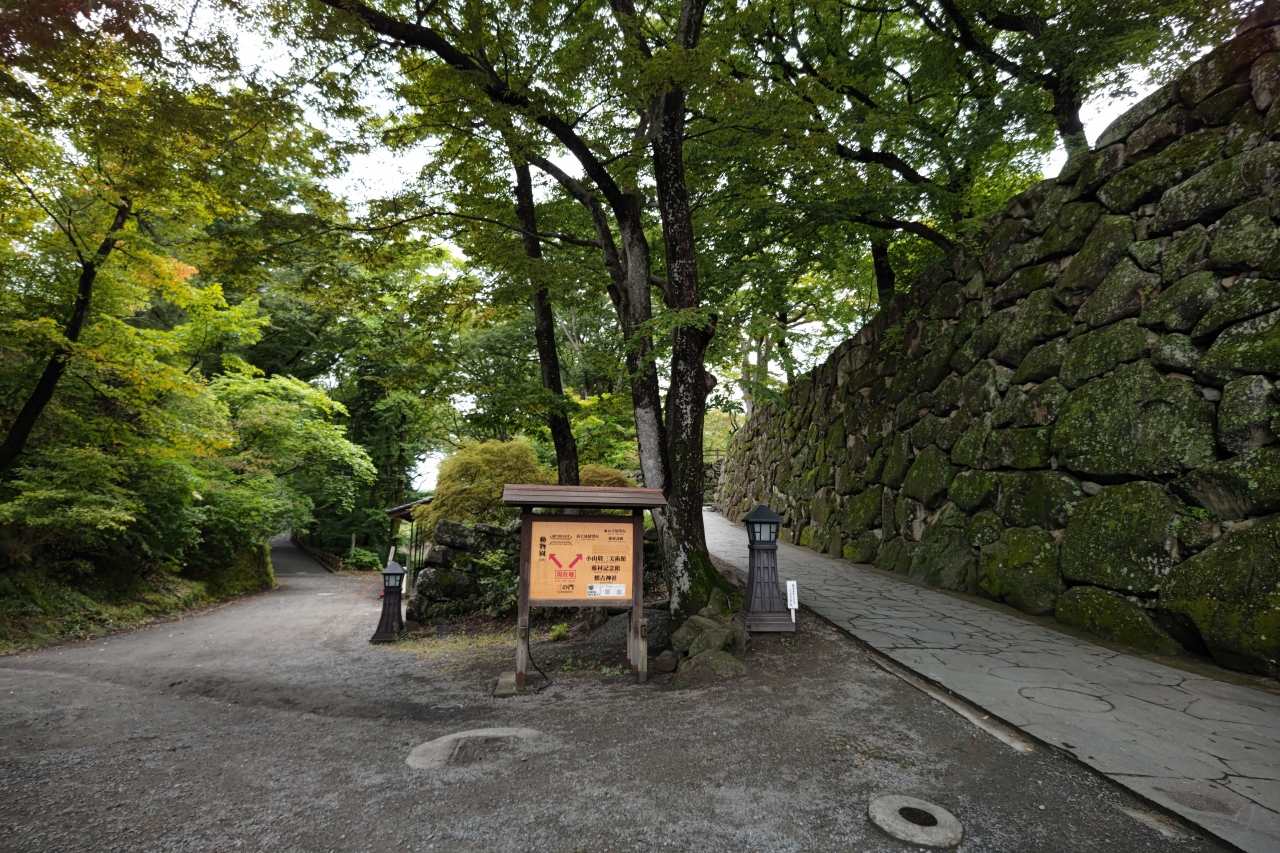 小諸駅の駅舎と線路を挟んだ反対側にある城址公園で、園内には動物園や資料館、食事処なども