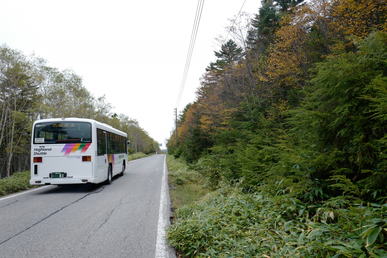 2つ目は「車で20分ほど下った場所にあるスキー場が駐車場として開放されており、そこからシャトルバス(無料)に乗って行く」、