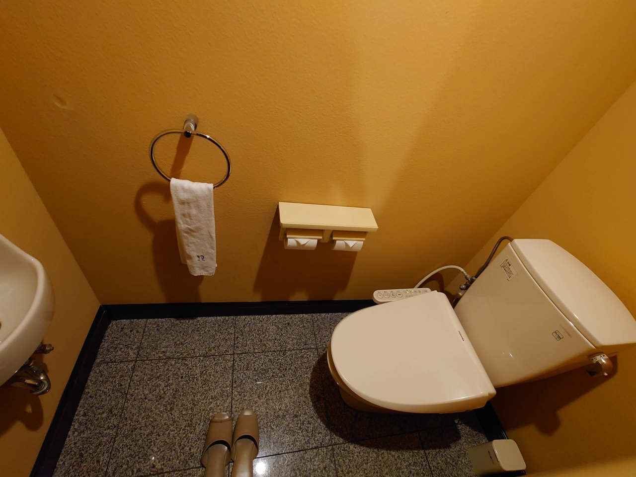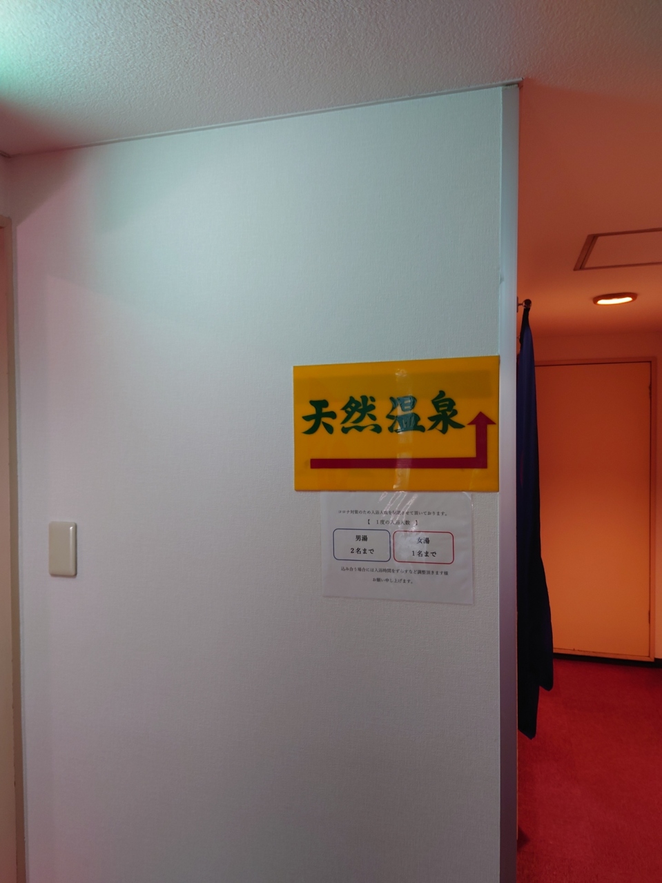 温泉は1階に男女別であり、小規模ながら掛け流しのお湯。源泉温度が高い為加水はあるもの消毒はなし。夜が22時まで、朝が6時〜8時と入浴可能時間が短いのも、アクティブに動き回る旅にはさほど気にならず。とっても気持ちいいお湯で最高でした。