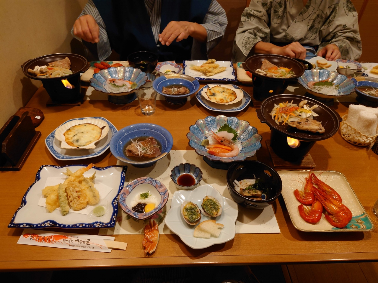 食事は1階の個室風の食事処でゆっくり頂けます。宿のすぐ近くが漁港ということもあり、とにかくお魚が美味しいこと。ついつい食べ過ぎてしまうものです。
