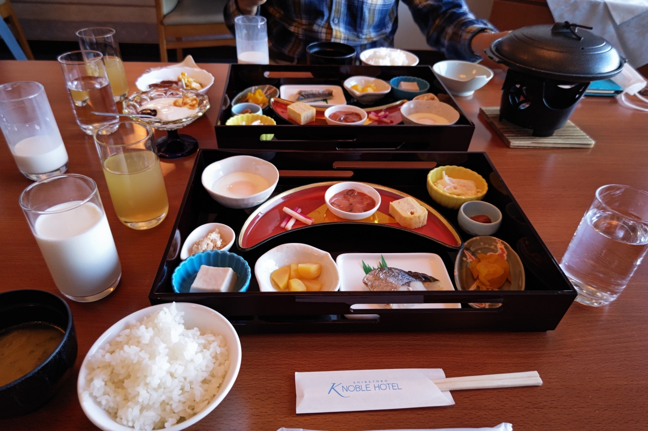内容はどちらも定食方式で、特に夕食には小樽産の刺身なども登場。美味しい料理ばかりでで満足でした。